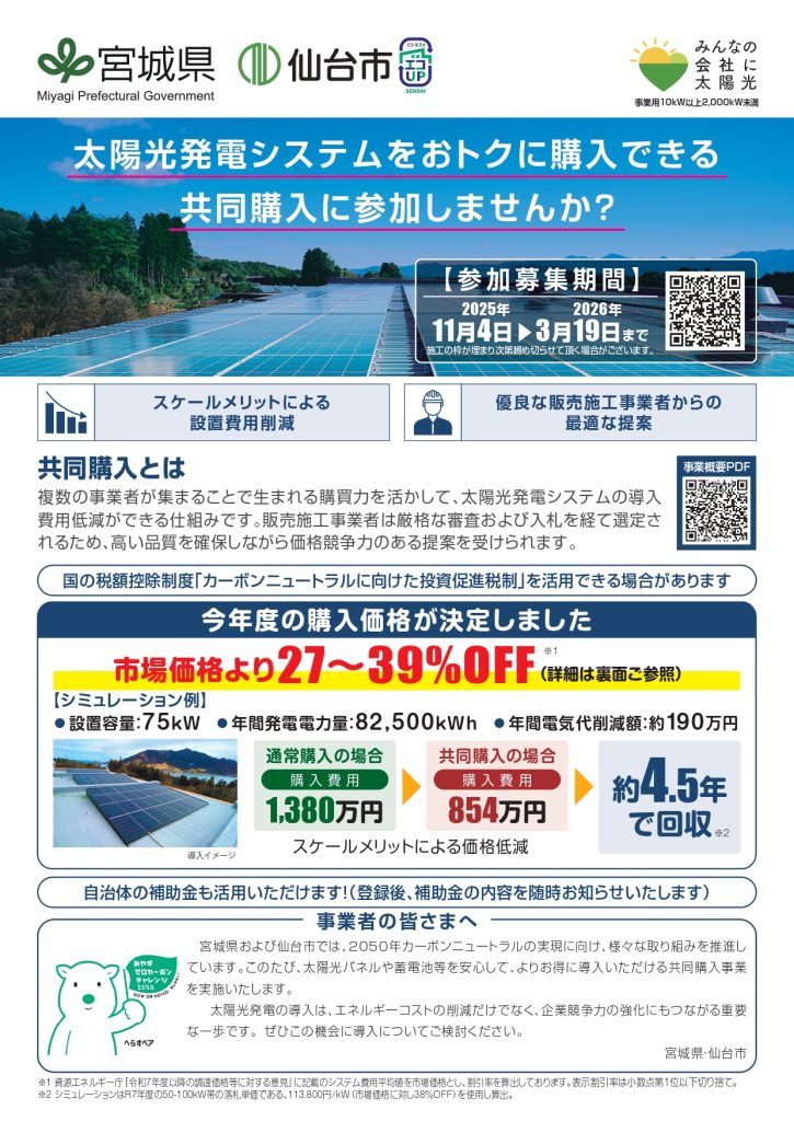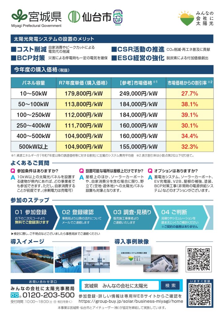 「宮城県×仙台市 みんなの会社に太陽光」の販売施工事業者に選定されました!